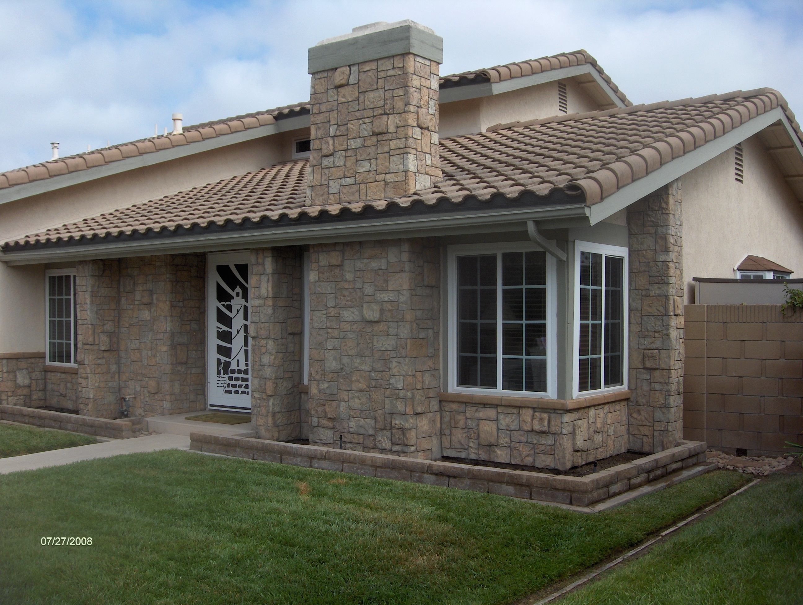 Всъщност добре е да направя едно уточнение: трябва да се прави разлика между щампован бетон и т. нар. stone veneer (още наречен на английски manufactured stone), което бихме могли да преведем като облицовка от изкуствен камък. Необученото око може да ги сбърка. И в двата случая се използва бетон като смес, но докато при щампованият бетон имаме щамповане и оцветяване на място, то при изкуствената каменна облицовка пак се използва бетон, който обаче предварително се оцветява и излива в калъпи под формата на камъни, които после се залепят на стената и изглеждат досущ като истински. За изкуствените камъни (които са не по-малко красиви от арт-бетона) си струва да се отдели специално внимание, за което ще гледаме да пуснем отделна тема.