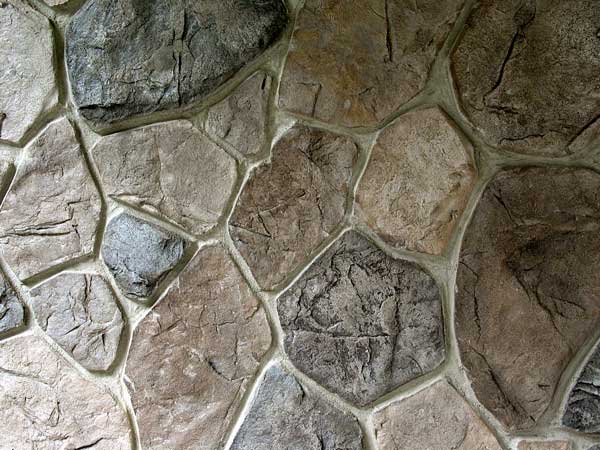 Реализмът на визията се постига с допълнително патиниране и изсветляване на места. Стига художникът да се справи добре, ако човек не знае, че са от бетон, спокойно може да помисли камъните за истински (което е и идеята):