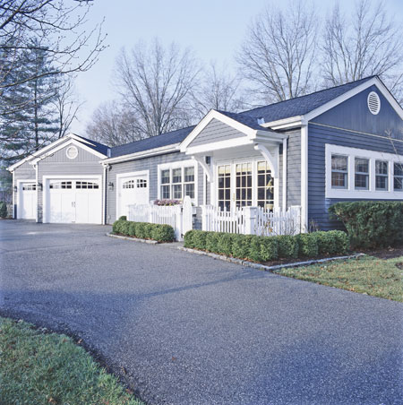 Когато гаражът и къщата са в архитектурна хармония. Искаше ми се съседа да беше гледал повече снимки като тази. Забележете как така наречения gable vent (вентилационна решетка под островръх покрив) на къщата кореспондира с този на гаража. Покривният скат на гаража задължително е същия ъгъл като на къщата. В България съм забелязал, че много архитекти си мислят, че колкото по „изчанчени“ ъгли имат покривните скатове, толкова е по-хубав дизайна. Соц. мисленето продължава да доминира в българските университети и скоро време не можем да очакваме радикални промени в мисленето на БГ архитектите.