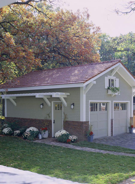 Много семпъл и добре направен гараж. Малката прикачена пергола придава допълнителна детайлност. А цветята в контейнери и сандъчета могат да разкрасят всяка постройка.