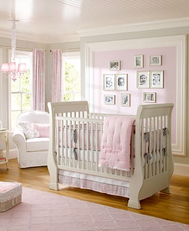 По отношение на мебелите за една бебешка стая не мисля, че има по-добър избор на цвят от белия. Боядисаните в бяло дървени мебели и белият трим на тавана и прозорците, в съчетание с нежните пастелни цветове в тази стая, създават усещане за уют, свежест и чистота. Вместо чисто бяло би могло да се използва бяло, примесено със съвсем фин и блед нюанс на някой пастелен цвят. Интересно интериорно решение е декоративният бял трим на стената, с който може да се обособи акцентно място за някои декоративни елементи, апликации, рисунки или снимки в рамки.