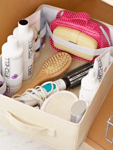 Вместо тези принадлежности да се трупат върху тоалетната маса, всяко допълнително решение за тяхното организиране по подреден начин е добре дошло за една жена. Когато един шкаф се изработва от дърво, това дава добра възможност да се проектират в него различни разделения. За по-добра организация част от тоалетните принадлежности могат да се поставят в шкафа в кутии, кошници или панери.