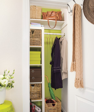 Гардеробът за палта и сака може да се оптимизира като се оползотвори свободното пространство под дрехите чрез поставянето на рафтове. Този гардероб по много организиран начин побира всичко необходимо за собствениците, когато излизат извън дома – от връхните дрехи до обувките.