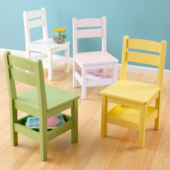 От гледна точка на дизайна, интересна идея би била вътрешната страна на това отделение да се боядиса в някакъв друг цвят, различен от цвета на стола. Подобни дървени столчета с удобно място за складиране на детски вещи могат да бъдат много полезни за една детска градина, учебен кът, детски център, начално училище или занималня, когато децата се обучават на четене, писане и творчески дейности като рисуване, моделиране, апликиране и други.