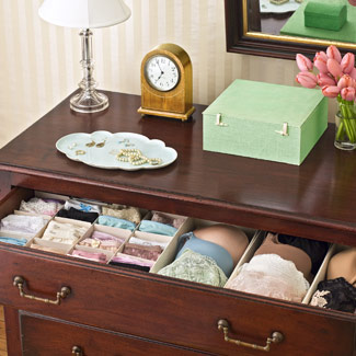 Освен шкафовете с рафтове, чекмеджетата също не са лесни за поддържане в ред, особено когато нямат някакви разделители, които да разпределят вътрешното пространство. Подобни разделители са много полезни и са наистина необходими за чекмеджетата, в които държим чорапи, бельо, дребни аксесоари и други малки предмети.