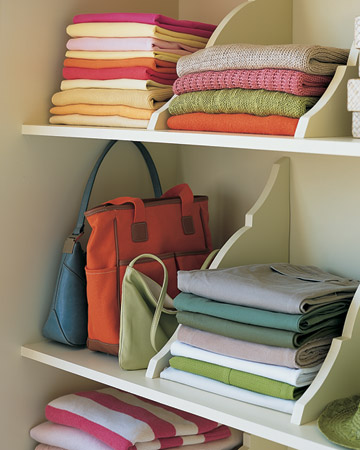 Шкафовете за дрехи са може би едни от най-трудните за поддържане в ред. Обикновено тези шкафове имат няколко широки рафта, на които се поставят дрехите, и колкото и да се опитваме да ги подредим на някакви обособени купчини, много скоро те се разбъркват отново. Затова много удобно и практично би било, ако рафтовете на шкафа за дрехи имат красиви дървени разделители. Така всяка една купчина от дрехи си има свое собствено отделение.