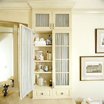 Завесите са подходящ аксесоар и за шкафовете със стъклени врати, които са предназначени за съхранение на множество дребни предмети, които бихме предпочели да не са на показ.