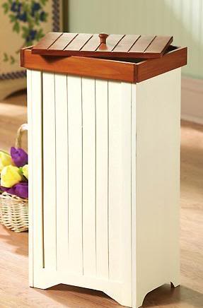 Подобен дървен кош изглежда значително по-добре от стандартните пластмасови кошове, които сме свикнали да виждаме в магазините за домашни потреби. За да се направи такъв кош, би могло да се намери пластмасов контейнер и да се направи подобна дървена кутия с капак, която да пасва на размера му и той да се сложи в нея. Така вътрешния контейнер няма да се вижда и ще може периодично да се мие, а дървото ще бъде по-защитено.