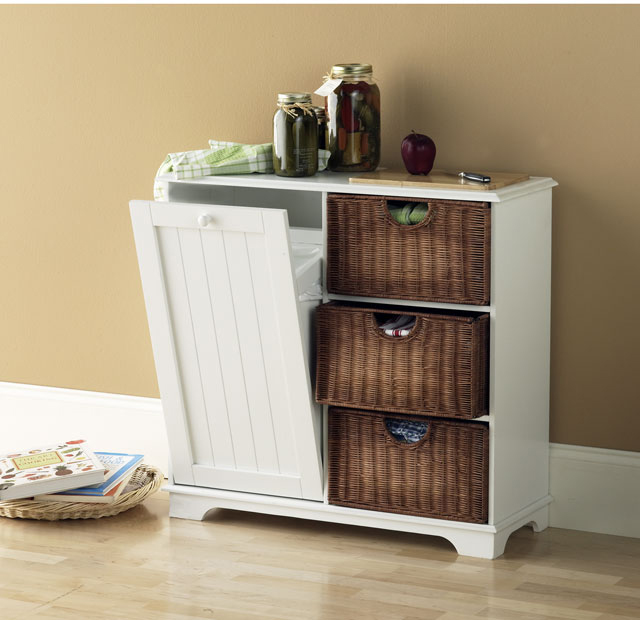 Ето още една идея за домашен шкаф с кош за боклук и допълнителни рафтове, на които могат да се сложат кутии или кошници за съхранение на домакински принадлежности за почистване, кърпи, парцали, стари вестници и списания и др.