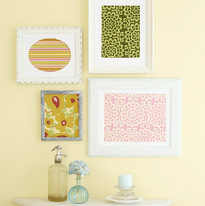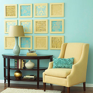 Предлагаме ви няколко лесни за изпълнение идеи за декориране на стените в дома ви. Различните примери са доста сходни помежду си и могат да ви помогнат да измислите и ваши варианти. Основната идея при всички тях е да се комбинират определен брой рамки с поставени в тях различни видове текстури и десени.