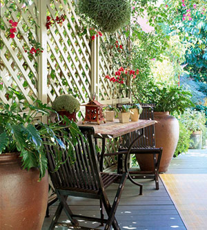 Подобни решетъчни „стени“ можете да използвате и за да създадете уют и уединение на своята веранда. Тяхната лека, въздушна структура ще подобри и разкраси всеки екстериор, особено когато се съчетаят с красиви цветя и зеленина.