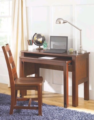 Това е едно компактно и функционално решение за детската стая, особено ако тя е малка и искате да оптимизирате мястото в нея. Изработеното от естествен дървен материал бюро е с напълно стандартен и семпъл дизайн, като изключим тази практична, издърпваща се приставка, която позволява при нужда да се увеличи работната площ на бюрото.