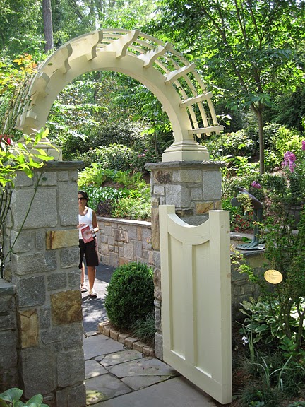 Ако сте почитатели на арковидните портали, ви предлагаме да разгледате тези два дизайна, които са доста различни един от друг, но и двата са много красиви и стилни. При първия, дървената входна арка е съчетана с ограда, направена в същия стил и цвят. Разбира се, подобна красота е възможно да се постигне и в нашите географски ширини, но по обясними причини височината на оградата и съответно на вратата под арката ще се наложи да бъдат доста по-високи от показаното на снимката: