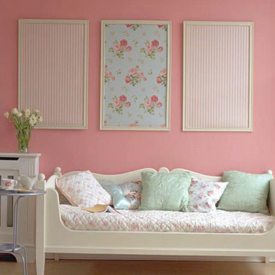Създайте ефектна и оригинална декорация като използвате остатъчни парчета от тапети с интересни десени, които да прикрепите върху няколко еднакви обикновени дървени рамки. За подобна идея могат да се използват също цветни хартии или парчета плат. Подберете десени, които да пасват цветово и стилово на дизайна на стаята.