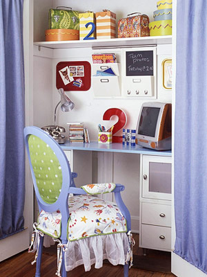 Един от начините да създадете компактен и организиран учебен кът в детската стая е като го вградите в ниша в стената или като използвате мястото на стар вграден гардероб. Това ще ви позволи да поставите и врати, които при нужда да могат да се затварят и да прикриват гледката на многобройните книги, учебници и пособия.