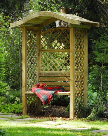 Освен че подобни дървени градински структури са много практични и не заемат много място в градината, те са и визуално красиви и стилни, и определено предразполагат към релаксиране на открито сред зеленината на природата. Ефирната, решетъчна структура на конструкцията я прави подходяща за подпора на увивни цветя и храсти.