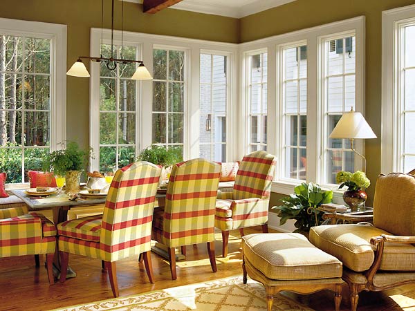 Декоративните корнизи в горната част на шкафовете, первазите в долната им част, релефните вратички, тримовете около прозорците – всичко това внася стил, дълбочина и изисканост в дизайна на кухнята. Тези детайли помагат за контрастното отсичане между различните цветове в помещението – например между бялата кухненска мебел, маслено зелената стена и дървения под. Благодарение на белия трим около тях прозорците изпъкват страхотно на фона на тъмната стена, вместо да стоят просто като едни правоъгълни отвори.
