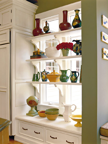 Стига да имате и други прозорци в стаята, това е един наистина страхотен начин да поставите на показ красиви кухненски съдове, както и саксии с цветя. В подобен уютен кът бихте могли да подредите и стъклени предмети и съдове в различни цветове.
