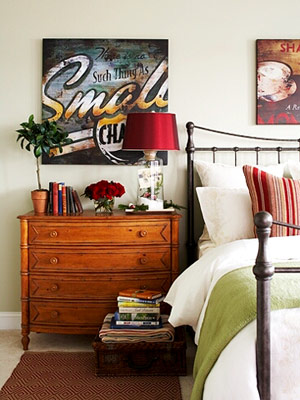 Белите или светло боядисаните стени, които са много характерни за българския интериор правят обстановката да изглежда студена и стерилна. Ето защо пребоядисването на стените в по-наситен цвят е първата стъпка към успешно преобразяване. Цветовата гама на която се е спрял дизайнерът е зелено-червено-кафяво, като белите завивки играят като фон за изпъкване на тези цветови акценти.