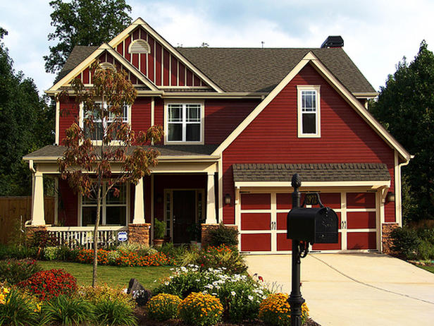 Какво прави всичко в тази гледка да изглежда толкова красиво, стилно и храмонично? Да, дворчето несъмнено е прекрано, с всички добре поддържани арки цветя, но не точно за това иде реч… Това, което придава уникалния вид на тази къща с червена фасада, е умелото комбиниране на червения цвят на сайдинга с белия цвят на тримовете, челните дъски и колоните, на фона на тъмно сивия покрив. Тези допълнителни архитектурни елементи дефинират по страхотен начин формите и цветовете и придават изключително спретнат вид на една къща.