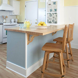 В тази статия ще ви представим две сходни идеи за дизайна на кухнята и по-конкретно на кухненския остров/бара. И в двете кухни цветовата гама е основана на контрастната комбинация между бяло и синьо, която допринася за повече светлина и свежест в помещението.