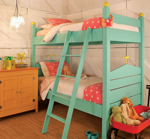 Децата винаги са харесвали цветните детски стаи и детските мебели, боядисани в свежи цветове. Не случайно съществуват изрази като „детски/бебешки цветове“. Освен това за едно дете са много по-интересни мебелите с някакъв нестандартен дизайн и декоративни елементи, разчупващи правите форми, отколкото просто едни красиви, изпипани, но скучни мебели. Попаднахме на тази свежа и колоритна серия от детски мебели и вярваме, че тя ще е добър материал за вдъхновение за читателите на блога: