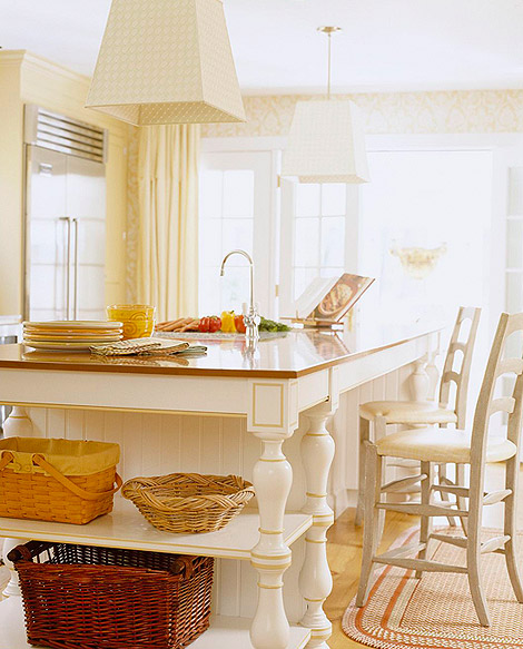 Когато проектирате кухнята си, бихте могли да предвидите специално място за точно определен вид кошници. Друг по-неангажиращ вариант е да предвидите място в кухнята си, където да имате широки открити рафтове. Кухненският остров е особено подходящ за подобни цели. Върху рафтовете можете да подреждате еднакви или различни по вид кошници, които в един момент можете просто да замените с колекцията си от красиви декоритивни вази и съдове.