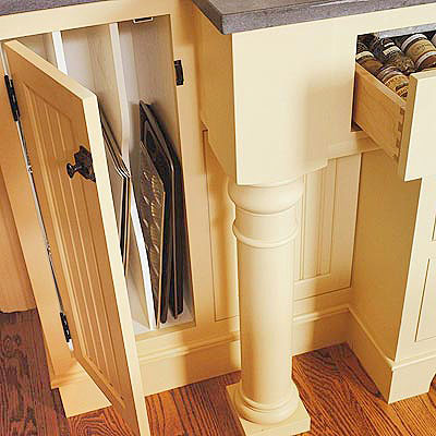 Малките вертикални ниши са много подходящи за съхранение на подноси, дъски за рязане, табли, форми за печене и т.н.