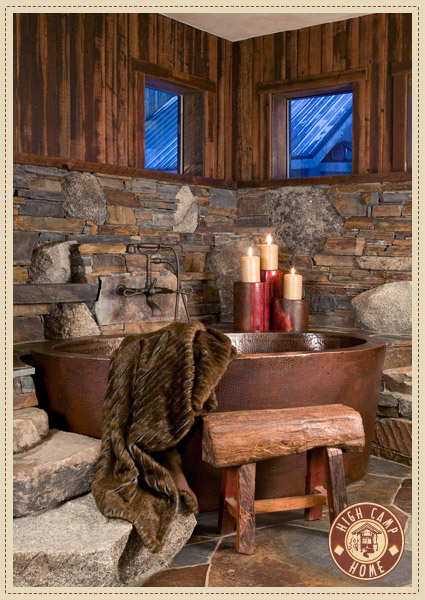Екстравагантни детайли като кована вана от мед следват линията на използването на натурални материали. Грубо обработената дървесина може да създаде уникални детайли, ако се балансира добре и не се прекалява много с нея.