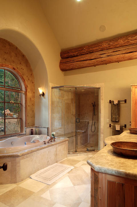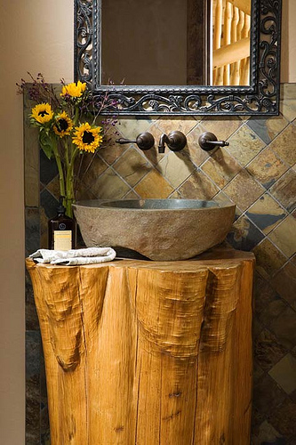 Друг уникален елемент характерен за за лог къщите е ваната от дърво, а също така и мивките от дълбан гранит: