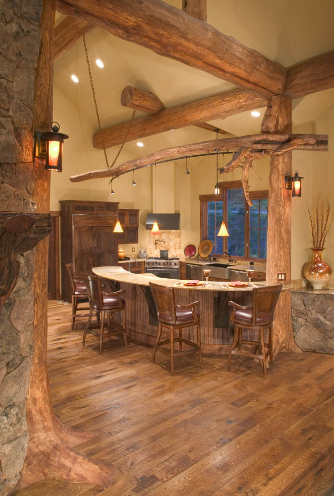Комбинацията на оцветена с тъмно масло дървесина заедно със светла дървесина е много характерна за планинския интериор.