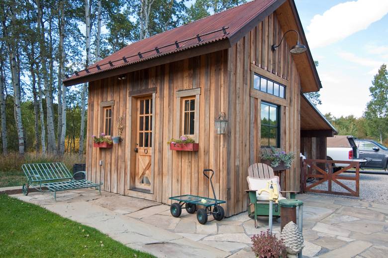 Дворни структури и малки къщички са особено подходящо приложение на употребявания дървен материал.