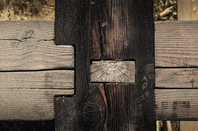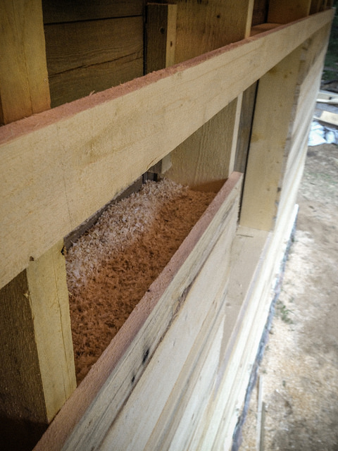 Носещите греди се обгарят по японския метод shou sugi ban и по този начин биват естествено защитени и импрегнирани, вместо да бъдат използвани химически импрегнанти.