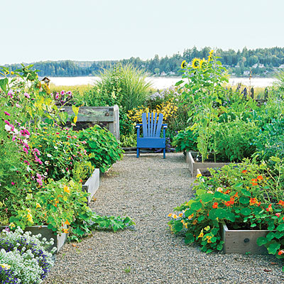 Това, което придава този уникален, спретнат вид на градината, е използването на дървени високи лехи, пътеки от Цялата публикация