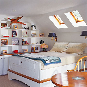Покривните прозорци могат да внесат много светлина, уют и разнообразие в интериора на подобна спалня на подпокривния етаж. Скосяванията на стените Цялата публикация