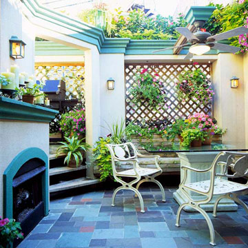 Много красиво решение за оградата на един двор е част от нея да представлява дървена решетка, на която да могат да се закачат саксии с цветя. Подобна решетъчна ограда може също да служи и като подпорна стена за пълзящи и увивни цветя, растения и храсти.