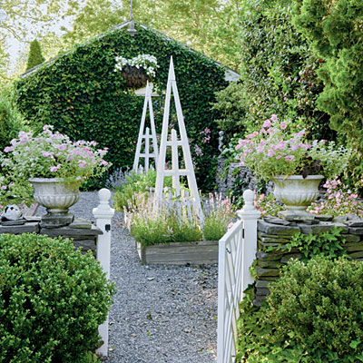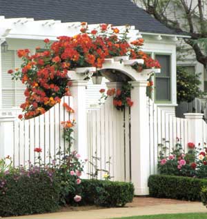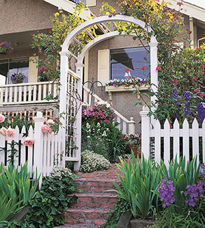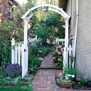 Поставянето на арка с подходяща врата и ограда ще превърне пътеката от невзрачна и скучна в приканваща нашите посетители към къщата и градината ни. От едната или от двете страни на пътеката задължително засадете и дълги, тесни лехи с цветя и храсти. По този начин дори и тясното пространство ще може да бъде оползотворено и превърнато в ефектен елемент от екстериора на къщата.
