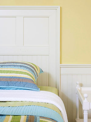Едно много елегантно решение за спалнята е да направите дървена предна табла на леглото в съчетание с дървена ламперия в същия стил. Семпли, но изящни дървените облицовки за стена придават много стилен и завършен вид на интериония дизайн на стаята.