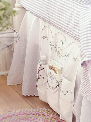 В тази статия бихме искали да ви покажем една много стилна и красива идея за спалнята и спалното бельо, изпълнена по два различни начина. Идеята е свързана с покривките за легло, които се слагат под матрака и се спускат надолу до пода, или т. нар. bedskirts. Сами по себе си тези покривки придават на леглото много елегантен и завършен вид, но в случая имаме и допълнително развитие на този текстилен елемент, достигайки до нещо много оригинално и практично: